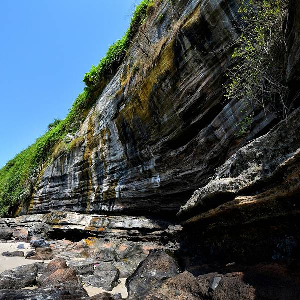暮崖位于北海涠洲岛的正西面,崖壁肌里层次分明,颜色浓郁。90度的坡度,让人心生敬畏。坐在暮崖上,看着远处的大海,下边奔腾汹涌的海浪猛烈地拍打着岸边的礁石,其风光丝毫不逊于巴厘岛情人崖。暮崖是新晋网红景点,整个断崖没有树荫,都是草地,最适合来的时间段是早上或者下午六点以后。