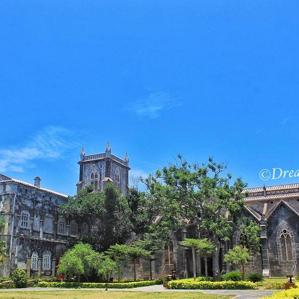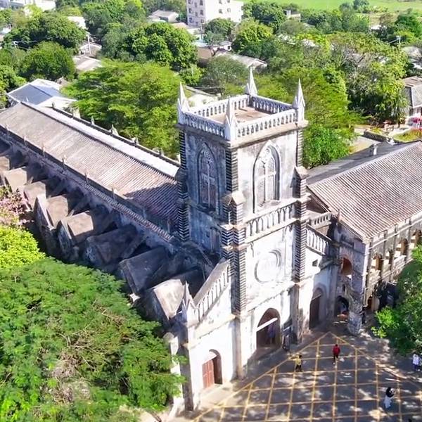 涠洲岛盛塘天主教堂位于涠洲岛盛塘村,是全国重点文物保护单位。教堂由法国巴黎外方传教士建于1853年,历时10年建成,建筑面积825平方,高21米,主体建筑保存较为完好,是我国现存的几座较大的天主教堂之一,也是中西文化融合共生的历史见证。整座教堂主要取材于海底珊瑚沉积岩,运用周密的力学设计建成。