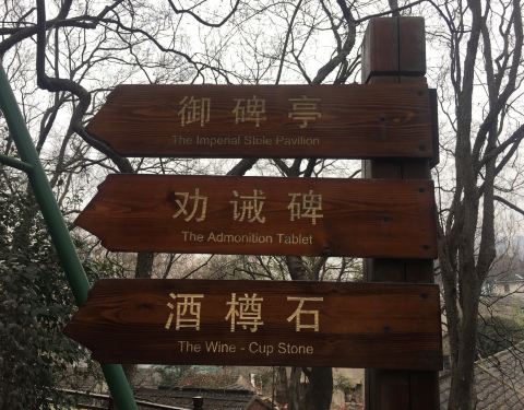 燕子矶公园位于长江南岸,尖尖的山头探入江水,两侧山石耸立,好像张开翅膀欲飞的燕子。燕子矶与采石矶、城陵矶合为长江三大名矶,旧时是重要渡口,现在是赏江景的好去处。 御碑亭进公园大门,沿南巡蹬道上燕子矶顶,乾隆南巡六下江南,五登燕子矶,均由此台阶登顶,山顶御碑亭中现在还能看到乾隆御笔“燕子矶”石碑。登上山顶后,视野,看近处悬崖峭壁下长江滚滚,远处开阔的江面船只往来,东望能见到南京长江二桥。每当夕阳西下时,江上红日与火红的燕子矶山壁像燃烧的烈焰,“燕矶夕照”是南京一大胜景。劝诫碑看过御碑亭边上一块像酒杯一样中间凹下去的酒樽石后,去到山顶另一处重要景点劝诫碑,上刻陶行知写的“想一想死不得”。燕子矶旧称“一仰一个”,意思是一抬头就能看到一个轻生的,陶行知为劝解而立碑。观澜亭从燕子矶顶下来,临江有个观澜亭,也是个很好的观景点,能从侧面看燕子矶和长江。亭附近的仙人洞是江水冲击而成,非常险。另外,沿着燕子矶的山路还有很多摩崖石刻可看,不过都是现代的。公园东边的一角有三角碑亭,亭中是刻着“遇难同胞纪念碑”的石碑。当年日军大屠杀在此杀死五万避难于燕子矶,想要渡江北逃的国人。