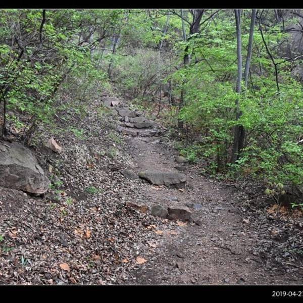 往前走个一二十米吧,离开主路的右手侧有个明显的入口式的上行台阶,我连想都没想就顺着台阶爬上去了。(其实上去后还能从另一条路绕回到主路上)