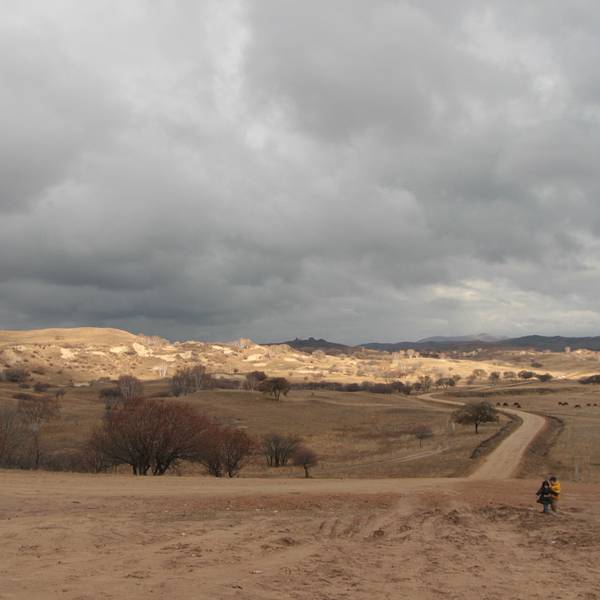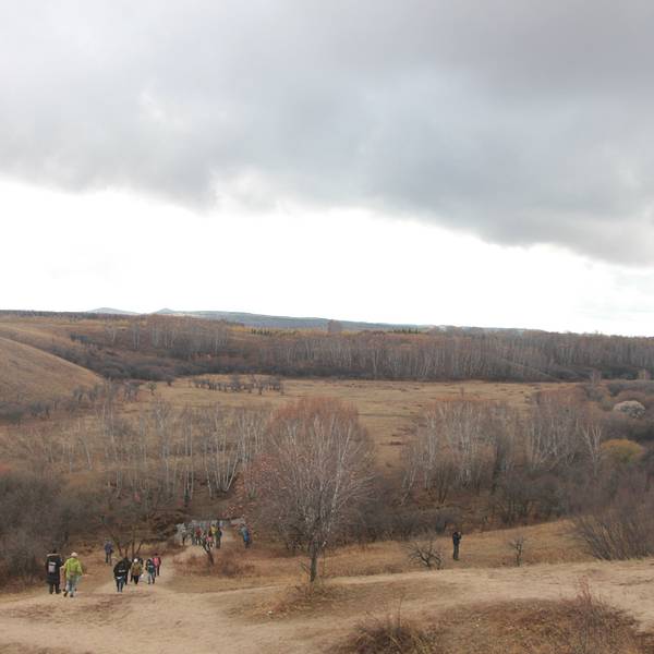 当地人告诉我们,乌兰布统最美的时间是在7、8月份,风景和现在的不太一样。虽说十月份植被已经开始枯萎,虽然没有夏季那样葱郁了,但是颜色却丰富多彩起来。一座山坡上就有五六种颜色,红色、黄色、绿色、粉色、灰色混在一起。