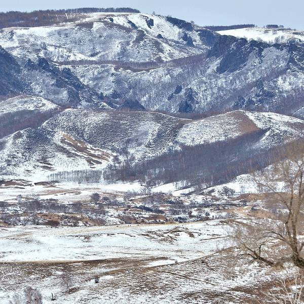 蛤蟆坝南北走向、两山夹一沟,形成独特的自然风貌。坡面不陡,但沟壑纵横,山顶是一片片的桦树林。