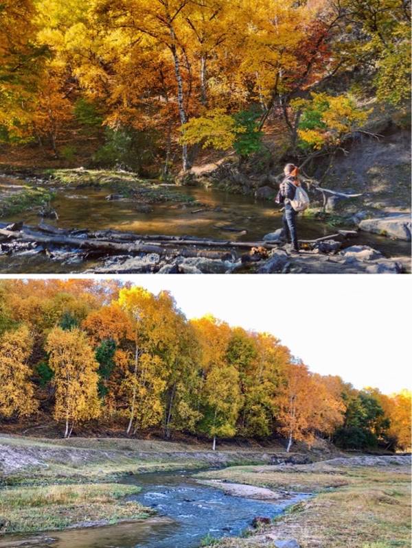 大片的桦树林+溪流,非常幽静。沿溪流可一路走到沟深处,宛如世外桃源。能够在大草原看到这种风景,一定不要错过。