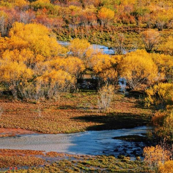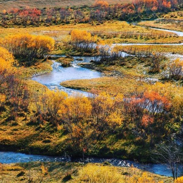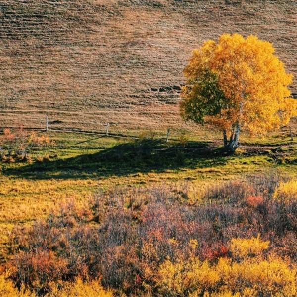 一到秋天,坝上五彩绚烂,各色秋景,美不胜收。