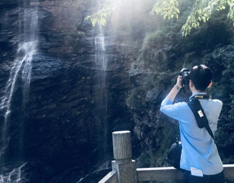 爬1400米的三叠泉 在顶峰拍骗照的时候拍到了一个很清新的小哥哥的背影[害羞]