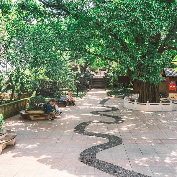 鹅岭公园游客稀少,倒是会有更多的重庆居民来散步休闲,是一个不错的喝茶地点。进入鹅岭公园第一感觉是环境幽静,空气清新,里面种满绿色植物,周围都是参天大树,在晴天进去也不用怕被晒,到处都是树影斑驳的感觉。天气好的时候,阳光从树叶缝隙中落到地面,景致非常吸引人。可能由于植物众多,大热天走在里面竟然也有种清凉的感觉,是一个不错的避暑之地。鹅岭公园位置很高,在上面可以很好的观赏重庆市区的风景,是俯瞰重庆全景的最佳平台之一,而且人真的很少,不像南山一棵树一样都是游客,适合静静的欣赏风景。