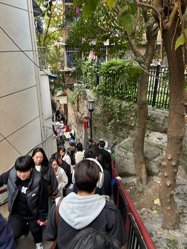 不是经典的打卡机位 但也是看到了好几辆穿楼的轻轨 从上面可以看到经典拍照点真的密密麻麻好多人 ...第一站到了鹅岭二厂 人很多 拍照打卡的人真的太多了 但是就我个人而言 不是很喜欢 但是文创小店还是可以逛一下 也有一些特色小吃 我们逛的很快可能也没有完全逛完就撤了打卡照从鹅岭二厂到李子坝的路上要下好多楼...第一站到了鹅岭二厂 人很多 拍照打卡的人真的太多了 但是就我个人而言 不是很喜欢 但是文创小店还是可以逛一下 也有一些特色小吃 我们逛的很快可能也没有完全逛完就撤了打卡照从鹅岭二厂到李子坝的路上要下好多楼梯 但是充满着乐趣类似小盘山公路 路边都是绿油油的楼梯很多 路也很窄 周边就是居民楼 会有好多卖烤肠的小摊到李子坝站 不是经典的打卡机位 但也是看到了好几辆穿楼的轻轨 从上面可以看到经典拍照点真的密密麻麻好多人 我还专门录了下来 展开