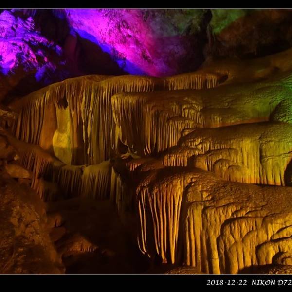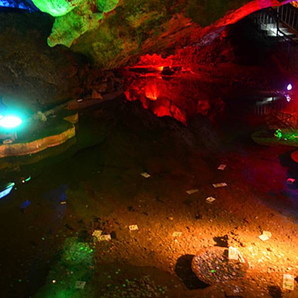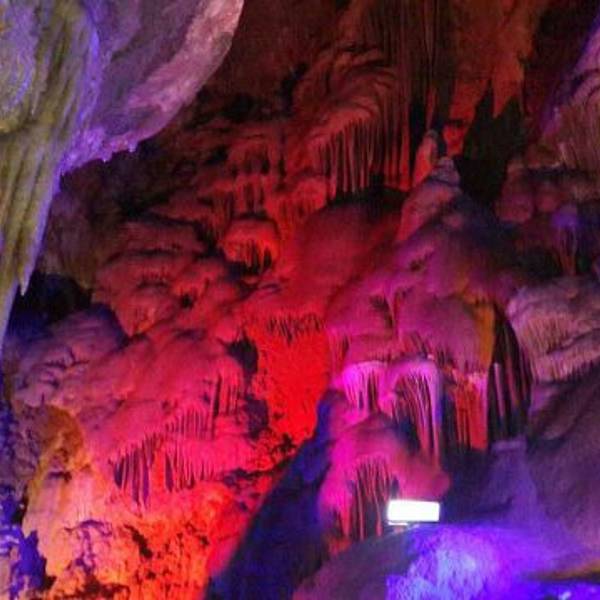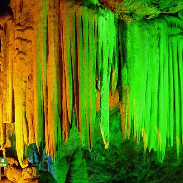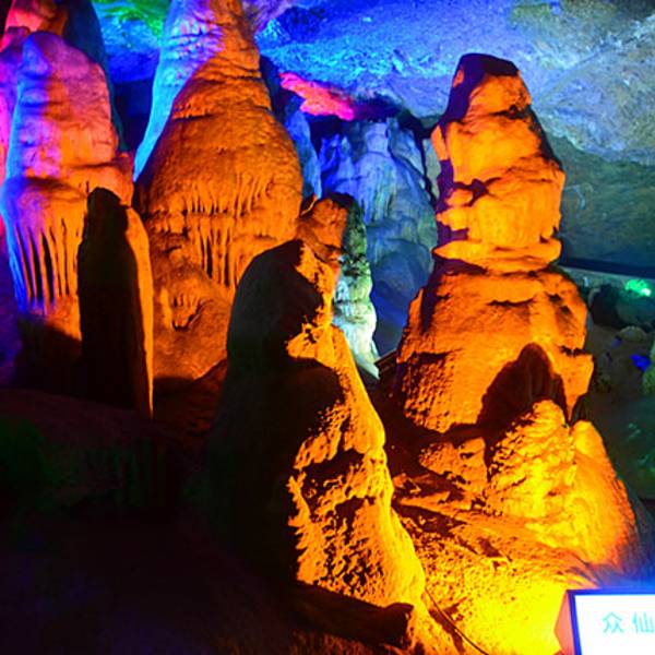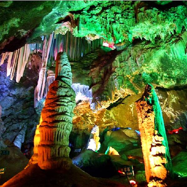 北方地区少有的喀斯特溶洞旅游景点,洞中藏有数十米高的巨大厅堂。 洞中的石塔、石柱和石花等,在灯光的承托下,千姿百态,美轮美奂。