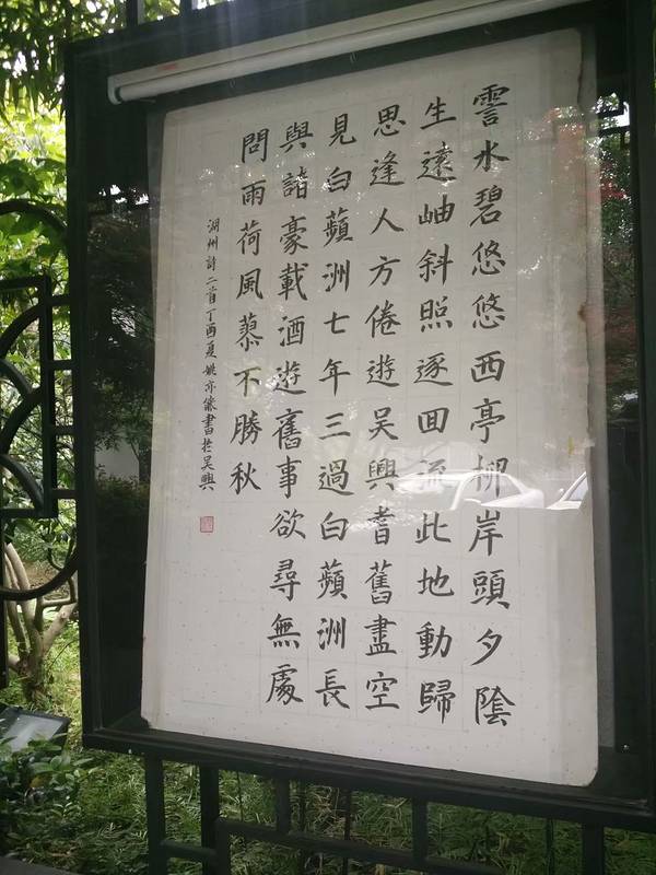 游玩2小时后,前往酒店,办理入住。湖笔博物馆,从公园后门出去,左拐就到了。门票20元,学生免票湖笔博物馆,从公园后门出去,左拐就到了。门票20元,学生免票。地方不大,很快就逛完了。走廊两侧有很多类似的书法作品。一进门,就能看到这大大的湖笔。游玩2小时后,前往酒店,办理入住。