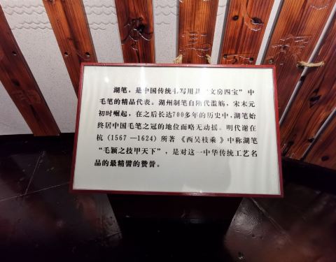 ...、各类文房四宝及相关的书画名人,分四个展厅,50元讲解费非常值得,否则逛一下不能体会其中的意义详细介绍了湖笔的历史、制作工艺、各类文房四宝及相关的书画名人,分四个展厅,50元讲解费非常值得,否则逛一下不能体会其中的意义!是书画爱好者的好去处。