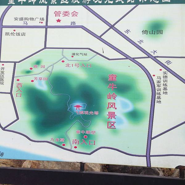 风景很美的一个地方,环境很优雅,适合家庭亲朋小聚。建议早一点去,要不然太热。 1、交通路线: 在开发区坐2路公交车在童牛岭站下车 在大连坐快轨 到开发区站下车 下车即是 有两种平选择,第一个是徒步上山,第二个是自己开车上山(童牛岭一共有三个入口:南口 北口 西口)2路车站到的是南入口 2、门票:无 3、停车场:有 4、特色:童牛飞天 ,飞碟, 梅花鹿场, 大钟 ,木栈道 ,小水库,爱情公园。 5、最佳游玩时间:早上十点钟左右或者下午四点钟左右