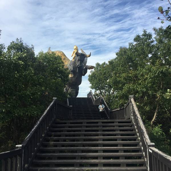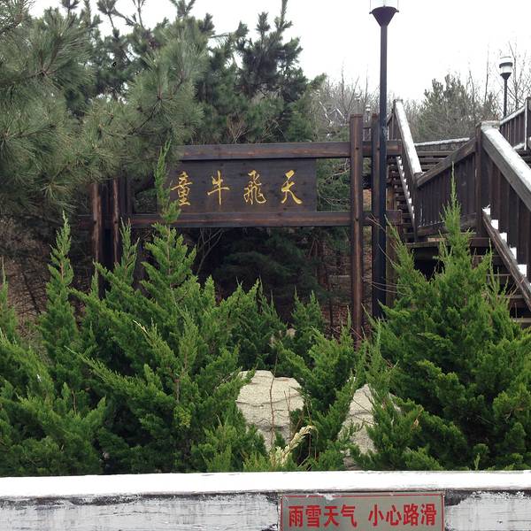 实用 童牛岭最佳之处在于,一基本不收门票,除非要登上飞碟,感觉一般人也不会有这个兴趣风景很不错的一个地方,适合开车自驾短途游,从大连开过来大概一个小时左右,时间赶得及的话还可以去一下更远点的金石滩。上午十点多到达,把车停在山脚下,徒步上山,上山的步道和大连的滨海路一样,是木栈道,...风景很不错的一个地方,适合开车自驾短途游,从大连开过来大概一个小时左右,时间赶得及的话还可以去一下更远点的金石滩。上午十点多到达,把车停在山脚下,徒步上山,上山的步道和大连的滨海路一样,是木栈道,两边是青山,空气很清新,让人感到十足的放松和舒适。一路沿着木栈道走上来,就能走到爱情公园,园内有很多关于爱情的石碑,适合情侣和家庭拍照留念,逛完小公园,大概也就二十分钟的时间,可以走木质台阶登上飞碟前面的小广场,山顶风比较大,登高望远,一面是金州开发区的全貌,一面可以看到远处的童牛和海景,视野很开阔。如果时间比较紧,可以开车一直到山顶的停车场,然后再走台阶到飞碟那里,也是不错的体验。原路返回到山顶停车场,然后可以选择开车或者步行去看童牛,走上棕色的木质台阶,巨大的童牛雕像就在眼前,非常的宏伟,台阶总给人一种安静怀旧的感觉,特别喜欢这种建筑风格。在童牛脚下有一个绝佳的拍照点,离童牛大概十几级台阶的那个小平台,人站在那里可以照出童牛的全貌,另外一侧则是休息的木板凳,还可以看看远处的大海。