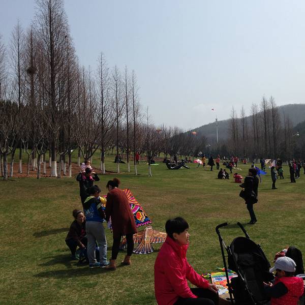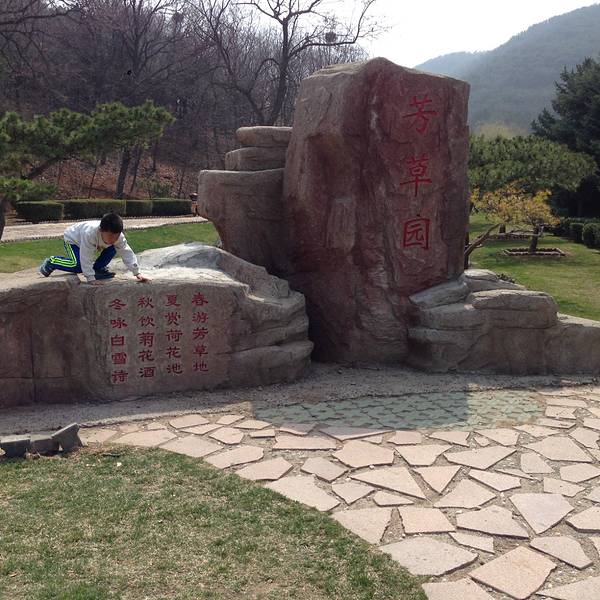 非常适合亲子游,带孩子喂小鹿,坐坐草坪,看看风景。 我们是2015年清明节去的,来这之前做了不少攻略,还在开发区住了一晚,请允许我和大家分享一下体验。 首先,选择什么线路上山?共有3个入口,南口、东口和北口。我从南口上去的,东口也走过。关于如何上山可选2种方式,看自己的体力而定:体力好的全程徒步,信步由缰,感受一下大自然的气息,我带孩子去,选择开车上山,山上有4处停车场山顶那个有大钟的收费5元,最拥堵的就是东口那里,没有停车的地。 第二推荐下上山时间,如果时间有可能,尽量避开节假日,实在不行,可以早点,可以有停车地方。 第三、建议下东口那没有停车的地方,可以停到旁边中医院的院子里。 第四、有名的地方,南口未上山前,路边有个九龙壁,全是恐龙,还有其他人造动物,喜欢恐龙的朋友可以多逗留一会。铜牛飞天、大钟、飞碟塔、芳草园(有个水库,水车)、喂小鹿处、山坡放风筝,几处景点。 适合放松心情,体会田园风光。不虚此行。