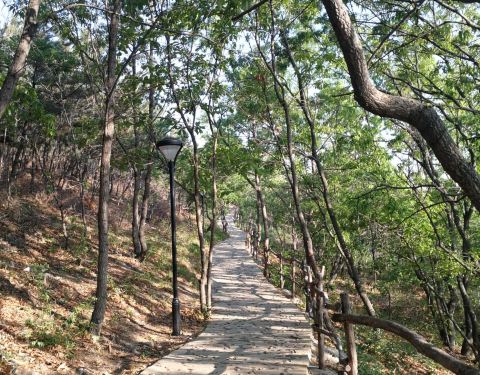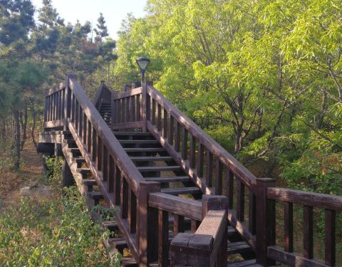 不过景色很漂亮,修建的栈道也很漂亮,到山顶可以鸟瞰红星海已经开发区景色,住的近的是每天饭后散步...
