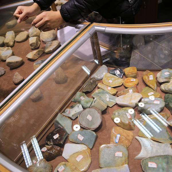 金骆驼 刚才说了,这店就在近日楼旁,饭后我们去转转。有些石头被切开了皮,看到了内部,看来是用来刺激客户赌性的刚才说了,这店就在近日楼旁,饭后我们去转转。