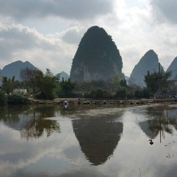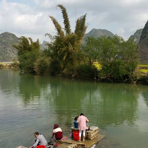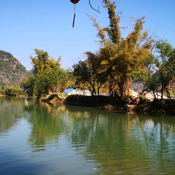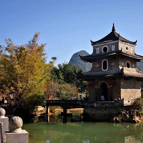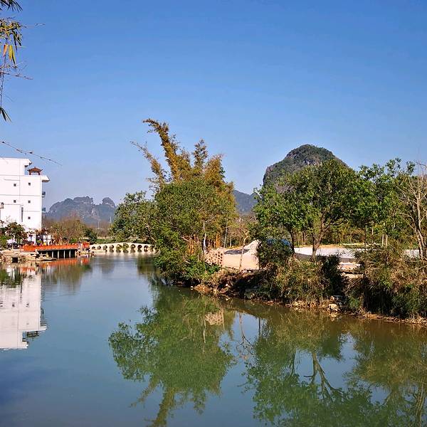 总的感觉是,旧州的自然风光与鹅泉非常相似,但镇子没有古镇的韵味。《鹅泉河风光》旧州在靖西城南9公里,离鹅泉不远。我们驾车二十多分钟就到了。旧州有"绣球之乡"的美誉,镇中一条街被称为绣球街。
