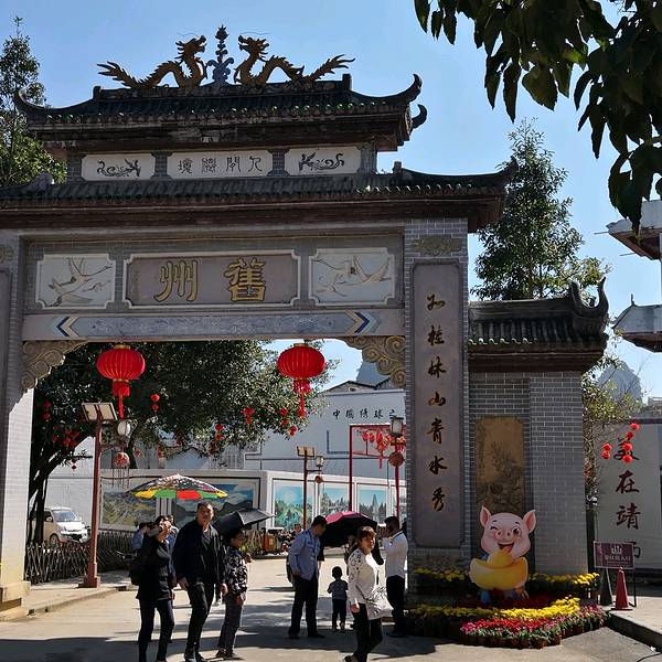 我们进入景区,沿着绣球街而行,街边房屋全都是新建的。虽然叫古镇,但全然没有古镇...旧州在靖西城南9公里,离鹅泉不远。我们驾车二十多分钟就到了。旧州有"绣球之乡"的美誉,镇中一条街被称为绣球街。