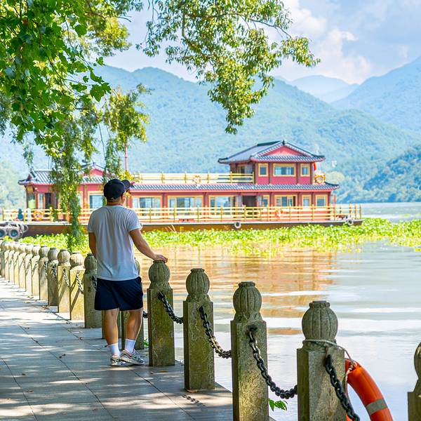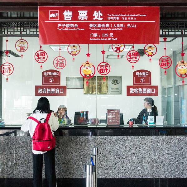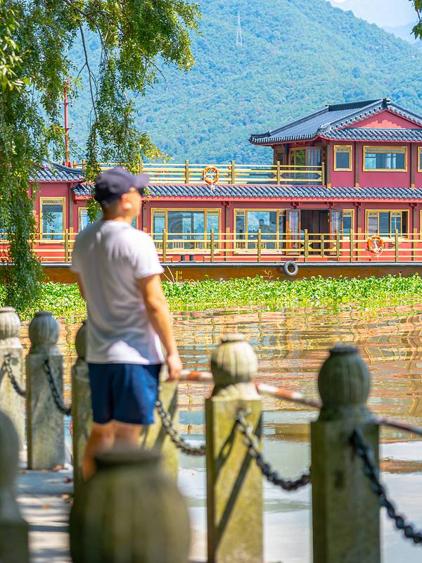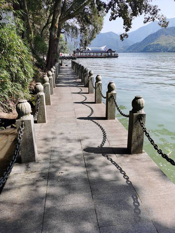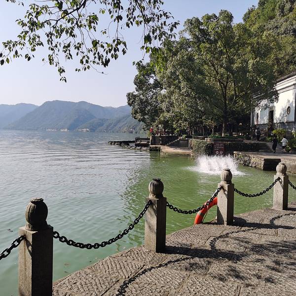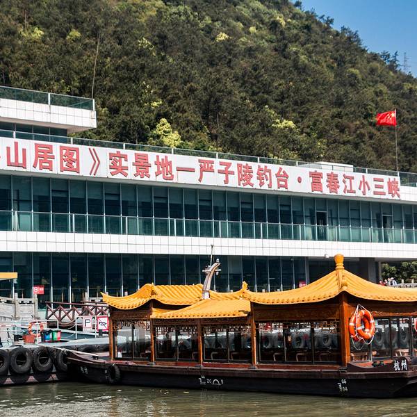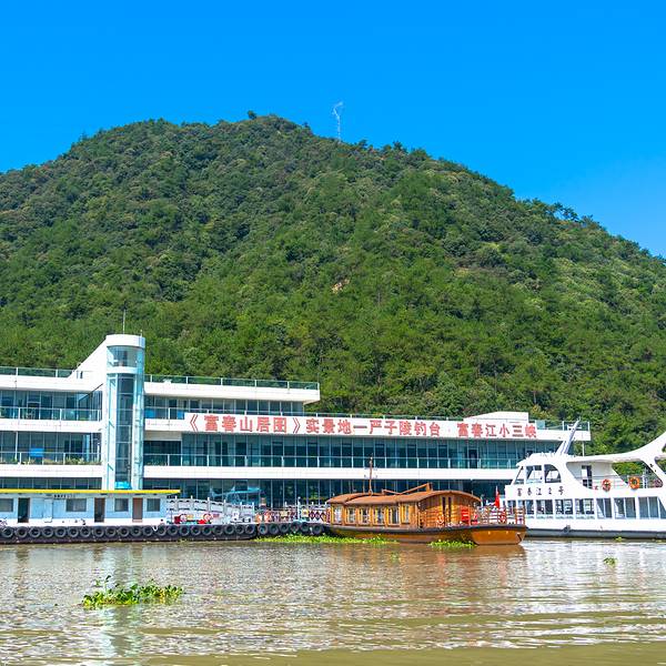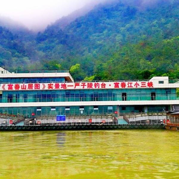 严子陵钓台景区位于桐庐县城西南15公里的富春江畔,相传是东汉高士严子陵隐居垂钓之地,景区内主要是七里泷至钓台的龙门峡段游船游览,以及去到严子陵钓台景区所在的小山看古迹,登台俯瞰富春江如画的山水景色。 进入景区后,首先在游客中心购票,旁边就是乘船的码头。散客等船的时间比较长,一般40分钟一班,除非正好碰上团队,不愿意等也可以坐快艇。在江上乘船的感觉很不错,有点走进《富春山居图》的感觉。 游船第一程到该钓台后上岸,停留约1小时。山脚下有一些古迹,刻有“严子陵钓台”的古牌坊,也在游客照片中出镜率很高的。此外还有严先生祠、天下十九泉等景点可以参观。上山的路分为东、西两条,其中东步道有大量石碑组成的碑廊,看不懂可以在下船的地方请讲解员。顺着林间小路上山,四周是茂密的竹林,山很小,15分钟即可登顶。山顶的钓台分东台、西台,东台相传为严子陵隐居垂钓之地,西台为谢翱器哭祭文天祥处。这两处均是不错的观景台,可以俯瞰富春江龙门峡的风景。如果不想爬山,在山脚下江边的茶楼坐着喝喝茶,看看风景,也挺惬意的,注意游船时间就好。 乘船返程时会在出发码头对面的钓鱼岛停靠,小岛上的景观基本是新近人工造的,有一个高高的拱桥,旁边有一个塔楼。这塔楼是个祈福去处,会有人说免费赠送红丝带给大家,然后引导你去祈福、点灯之类的,最后说可以“随缘”给香火钱。 此后的景点是江南龙门湾,在码头坐船可以看到唐松迎客等景点,此外还有水上娱乐、餐饮等,都需要另外付费。如果不感兴趣,也可在钓鱼岛码头坐船返回,不跟随大部队也是可行的。