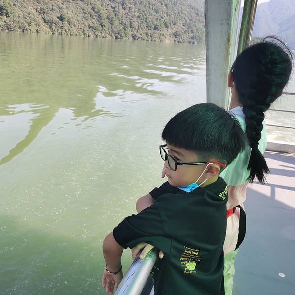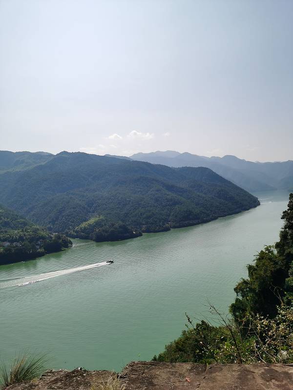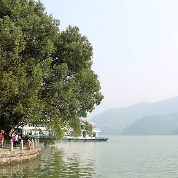 乘游船游览富春江,登上钓台俯瞰富春江如画的山水景色。