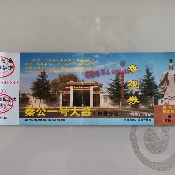 门票:35元/人。椁室两壁外侧的木碑是中国墓葬史上最早的墓碑实物 秦公一号大墓曾经在央视记录频道有专题介绍,我也是看了这个专题才知道有这么一个秦公墓的。 秦公一号大墓位于陕西省凤翔县南指挥村,距今已有二千五百多年历史。与它相邻的还有42座尚未发掘的规模较大的... 秦公一号大墓曾经在央视记录频道有专题介绍,我也是看了这个专题才知道有这么一个秦公墓的。 秦公一号大墓位于陕西省凤翔县南指挥村,距今已有二千五百多年历史。与它相邻的还有42座尚未发掘的规模较大的墓葬,一起组成了这座秦公陵园。秦公大墓是整个秦公陵园中最早发现、唯一发掘的最大墓葬,故称秦公一号大墓。 到一号大墓没有专线车或公交车,需要在宝鸡汽车站乘坐宝鸡至凤翔的乡村班车,这趟班车要路过一号大墓,就在门口下车。 大墓平面呈“中”字型,全长300米,面积5334平方米。有东西墓道和墓室。它占据了中国考古学史上五个之最:它是迄今中国发掘最大的先秦墓葬;墓内186具殉人是中国自西周以来发现殉人最多的墓葬;椁室的柏木“黄肠题凑”椁具,是中国迄今发掘周、秦时代最高等级的葬具;椁室两壁外侧的木碑是中国墓葬史上最早的墓碑实物。 大墓中出土的石磬是中国发现最早刻有铭文的石磬,石磬上的文字多达180多个,字体为籀文。根据这些文字推断墓主人为秦景公。景公是秦第14代统治者,秦始皇嬴政的第18代先祖,自公元前577年起,在位40年。