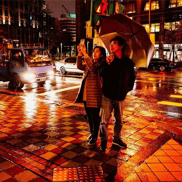 竟然拍到了一对小情...吃过晚饭,沿着忠孝东路走了一会儿,大约半小时就到了台北最新最现代化的商圈--信义商圈