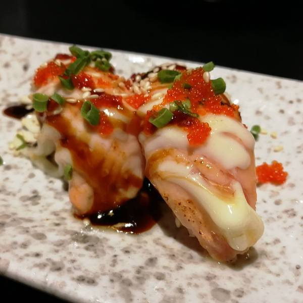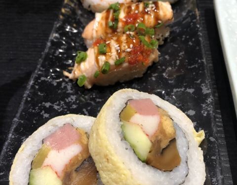 芝士烤大虾,很喜欢,摆盘很精致,特别喜欢盘子上的一束梅花,很有意境。大虾很能,与芝士的完美的结合,甜甜的。刺身拼盘,还算新鲜,摆盘也是很好看,三片三文鱼,三片北极贝,两只甜虾,还有一些象牙蚌,搭配很好,传统的刺身都可以尝一尝,分量虽然 不多的,但是刚刚好。烤鳕鱼也不错。摆盘是超级精致的,香煎的火锅刚刚好,刺也比较少。搭配的花生酱,味道虽然有点油腻,但是分量很小,所以刚刚好。入口感也很有层次。烤龙利鱼,这道菜是有点失水准的,不太推荐。烤的有点焦了,很干,入口感不佳,搭配的沙拉酱也很腻。寿司拼盘,有两个反卷,两个蛋皮卷,味道都还不错的。很喜欢火炙三文鱼寿司,味道很重口,再搭配一些鱼籽酱,完美。炸物拼盘,中规中矩吧,榴莲酥还是不错的,毕竟我超级喜欢吃榴莲,是用真实果肉做的。肥牛火锅,还不错,有两盘肉,而且味道还有点膻,感觉是货真价实的。吃完饭可以去西湖逛逛,离湖边很近。