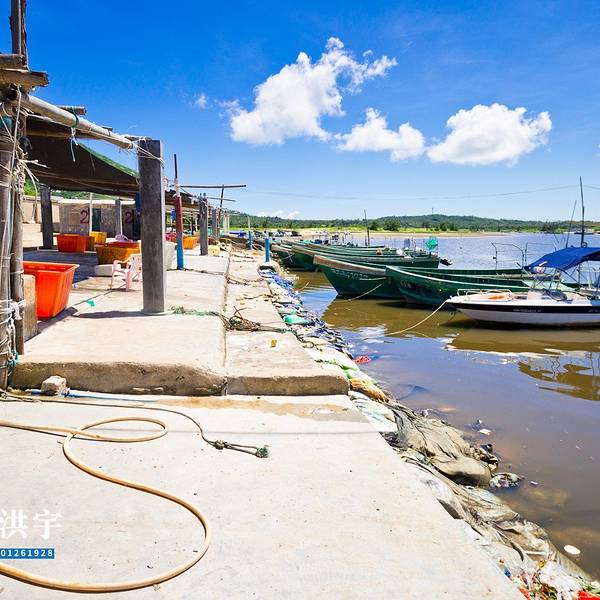 既然铜鼓岭上不去了,但我们也不能错过大海啊,刚好铜鼓岭旁边有一条比较窄的马路,目测是通往大海的方向,我俩一商量,决定进去闯闯看。这条路不是很好走,路上坑坑洼洼特别多,我们又是租的轿车,开得那叫一个胆战心惊。开了大概有十来分钟,当我们已经前方已经没有路的时候,一座破败的小渔村出现在眼前。反正我至今不知道这个小渔村叫什么名字。铜鼓岭靠近渔村,一股浓郁的鱼腥味扑面而来,令人印象深刻。港口停留着大大小小的渔船,整个渔村荒无人烟,除了另外一个车上的游客几乎没有遇到其他人,地上散落着垃圾,整个场面毫无生机。好歹渔村是靠近海边,我们把车挺好之后,开始向海边进发。铜鼓岭我们现在的位置正好在“铜鼓岭”的山脚下,面朝着大海,风景异常的漂亮。不远处的海面上停留着大大小小的渔船,为这道亮丽的海岸线增加了一丝灵气。铜鼓岭此处的海水颜色是分层次的,最远的地方是蓝色,中间是黄色,近处是紫红色。如果能够上铜鼓岭从高处眺望,肯定风景会更美。铜鼓岭这个时候的太阳光特别的强,也很热,我们没在海边逗留很久,拍了一些人像照之后就回车上了,准备前往下一个目的地。铜鼓岭铜鼓岭这个地方平时应该很少有人问津的,不过因为铜鼓岭封山之后,许多自驾而来的游客都摸索着到了这个小渔村。下面这张合影就是让一伙广东来的自驾游客帮我俩拍的。铜鼓岭 展开