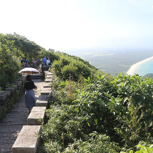金骆驼 ...里的天气好,空气能见度更高,只是气温太高了,不过喜欢美景不怕热的人强烈建议是夏季到铜鼓岭来游玩铜鼓岭是整个海南岛东部沿线一带海拔最高的山峰了,有着“琼东第一峰”的美誉。山野君起初也不知道这里的景区,还是在地图上看到一座三面环海一面衔接着大陆地的一座小岛屿,跟山东烟台芝罘岛有着高度相似的构造...铜鼓岭是整个海南岛东部沿线一带海拔最高的山峰了,有着“琼东第一峰”的美誉。山野君起初也不知道这里的景区,还是在地图上看到一座三面环海一面衔接着大陆地的一座小岛屿,跟山东烟台芝罘岛有着高度相似的构造。于是,我对这个铜鼓岭充满了好奇之心。并在网络上攻略这个景点,果然这里还是一座风景宜人的海岛风光景区呢。所以,铜鼓岭就被我列入了此次文昌之旅的一个去处了。到了铜鼓岭之后才知道铜鼓岭不是一个景点,而是一大片自然保护区,分为月亮湾、铜鼓山、铜鼓岭自然保护区以及诸多古刹等景点组合而成。在山顶之上有一座为了保护祖国的南海的军事基地,到了这里千万不要随便进入,这里是有指示牌可以通行的。从这军事基地的旁边通过即可到达海拔338米的海拔也就是铜鼓岭的最高点的位置以后,可以鸟瞰整个海景。沿着古色古香的石栈道步行,就像是海上天宫一样非常的惬意、舒适与美好。当你到了顶峰的时候像是在天界里过神仙日子一样,或是又像是在梦境里一样那么唯美的不现实。