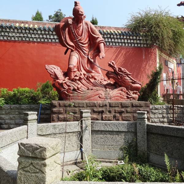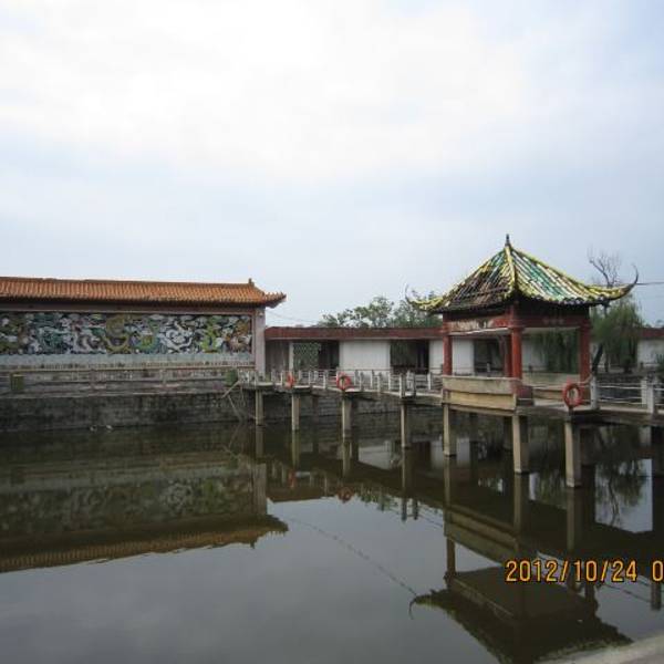 万寿宫大门隔着马路对面是放生池,供奉着观音菩萨。