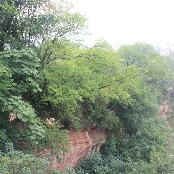 这里有历代名人书画碑刻近两百块,苏东坡的碑刻尤其多。因为有岩石突出像城壁一般,颜色赭红色,所以叫赤壁