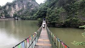进去的时候是坐游船进去的,出来是沿着湖水走出来的,尤其是途中走过的吊桥,非常得好玩进去的时候是坐游船进去的,出来是沿着湖水走出来的,尤其是途中走过的吊桥,非常得好玩;这个景点跟温州雁荡山差不多,都是去看石头