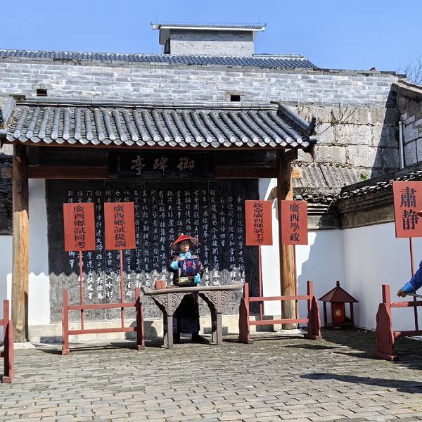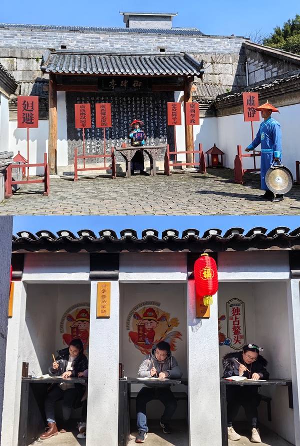 3、门票不便宜,但有免费讲解,最好能跟着景区导游,不然主体建筑参观不给散客进去,只能跟着团队进去,里面有陈列展览,不能拍照,参观结束后,有体验拓福字,带走需要成本费10元,但也没有强迫一定要消费,自愿原则,我认为没有太大必要。贡院书画展,字画可以出售,根据个人喜好选择购买,价格偏高,不太值得。最后参加举人考试,答题还是挺好玩的。讲解过程带有销售性质,不太受游客喜欢。