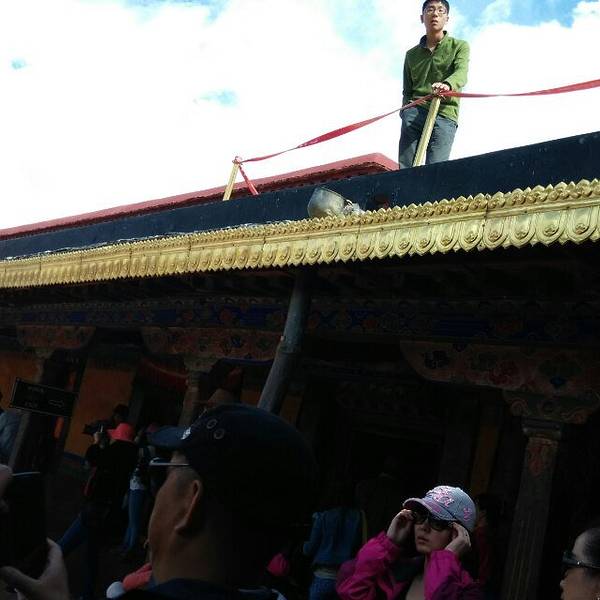 另外大昭寺进去的人会有很多人提着开水壶进去,也不知道是干嘛,可能是和朝拜有关吧。大昭寺上面有很多人金碧辉煌的建筑,都很美丽,在中国几乎算是国宝吧。