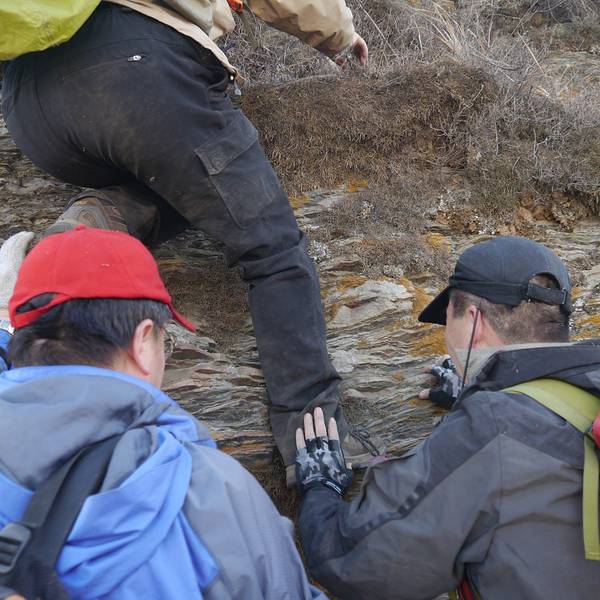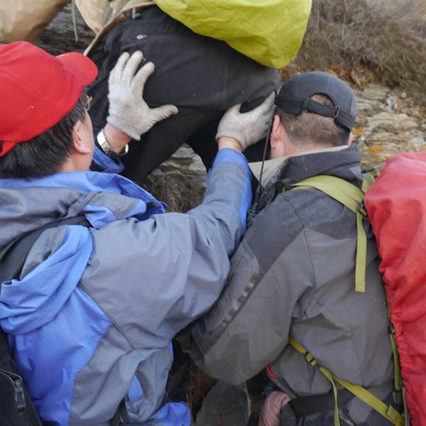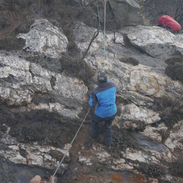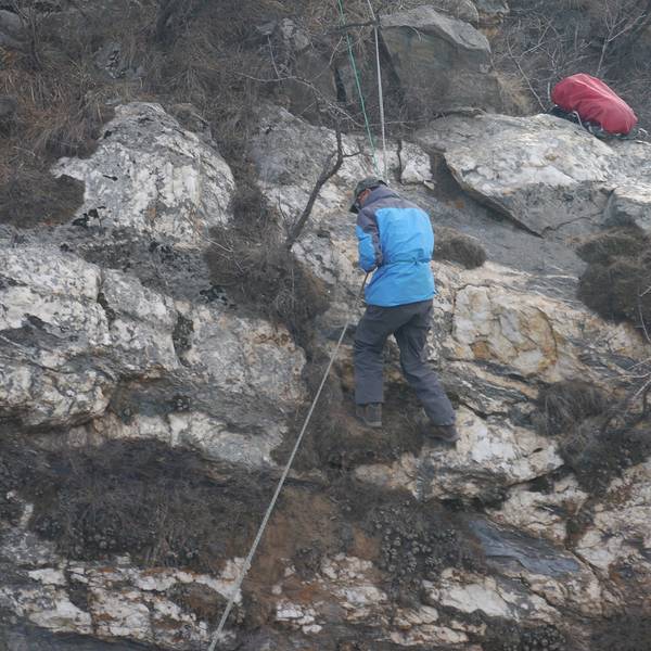 相当难,清湖片断崖绝壁行走,户外第一次用绳子,刺激!