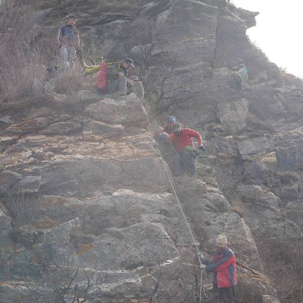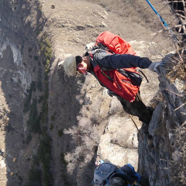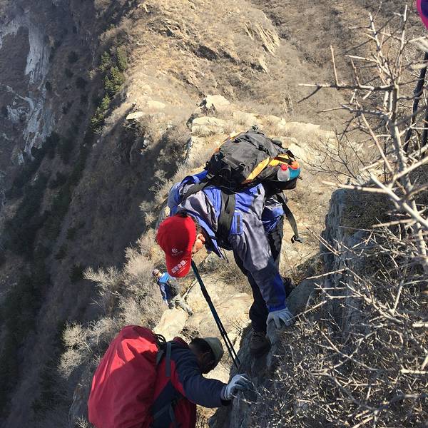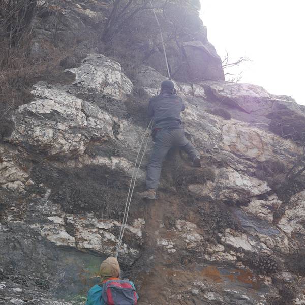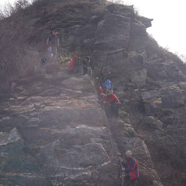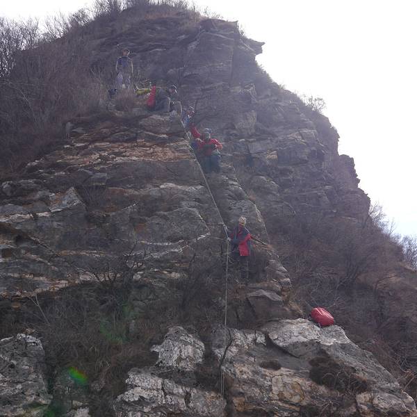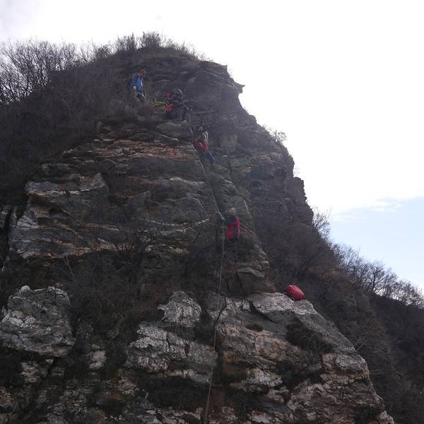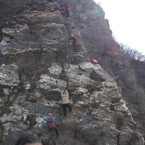 相当难,清湖片断崖绝壁行走,户外第一次用绳子,刺激!【地点】房山霞云岭