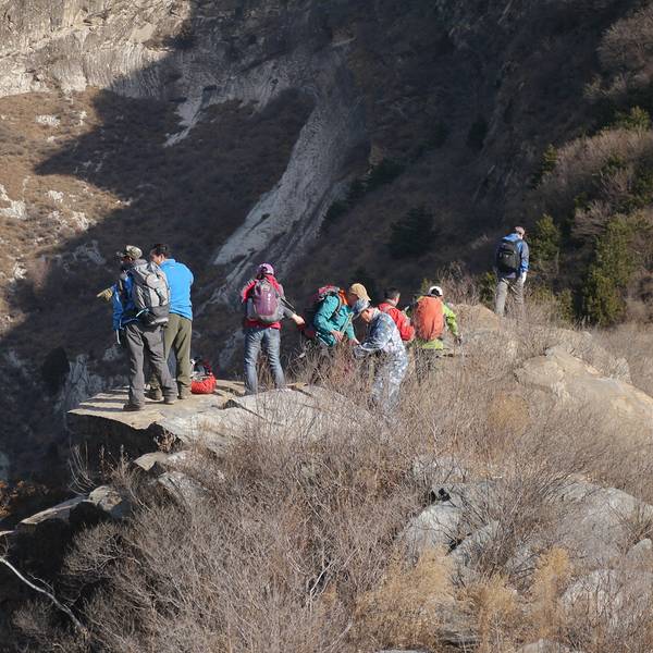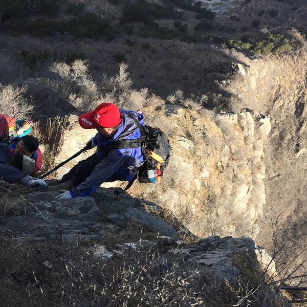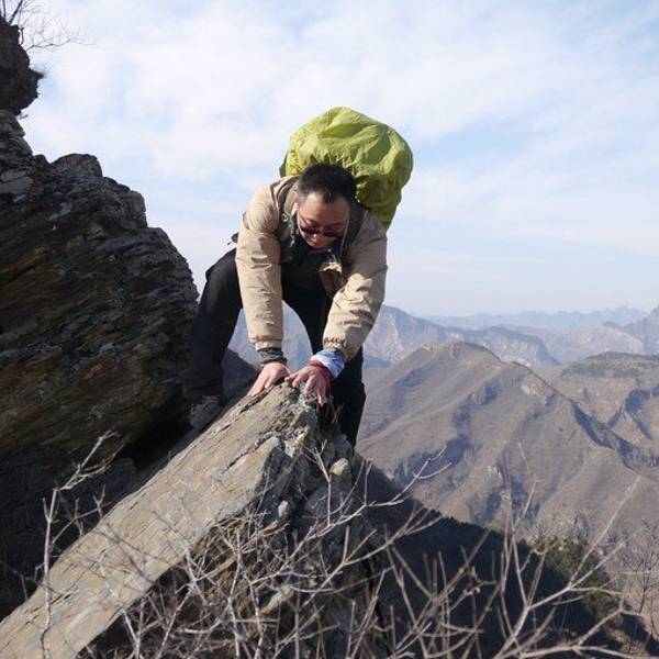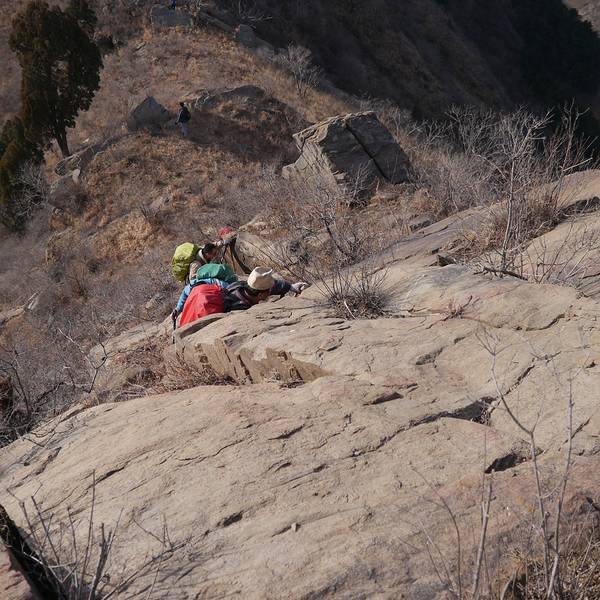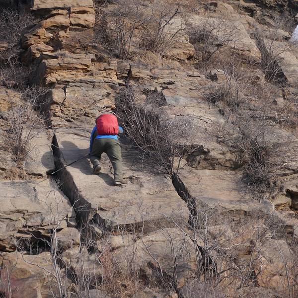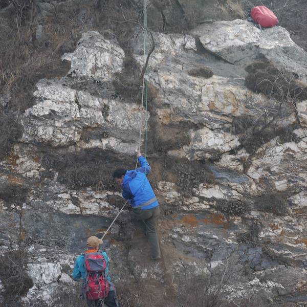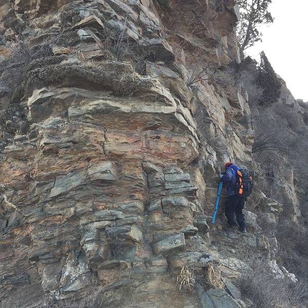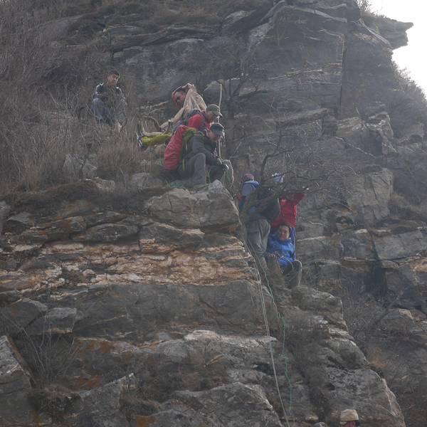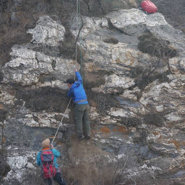 相当难,清湖片断崖绝壁行走,户外第一次用绳子,刺激!【地点】房山霞云岭