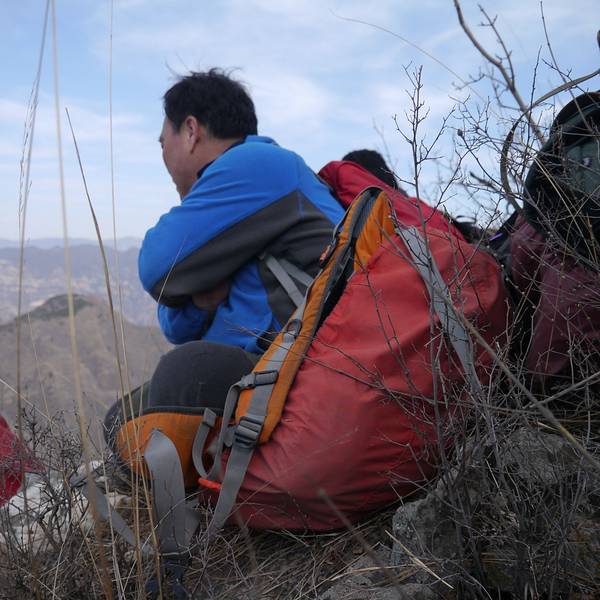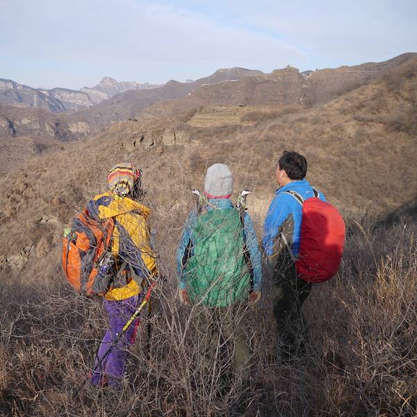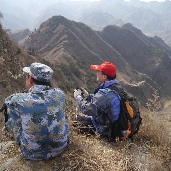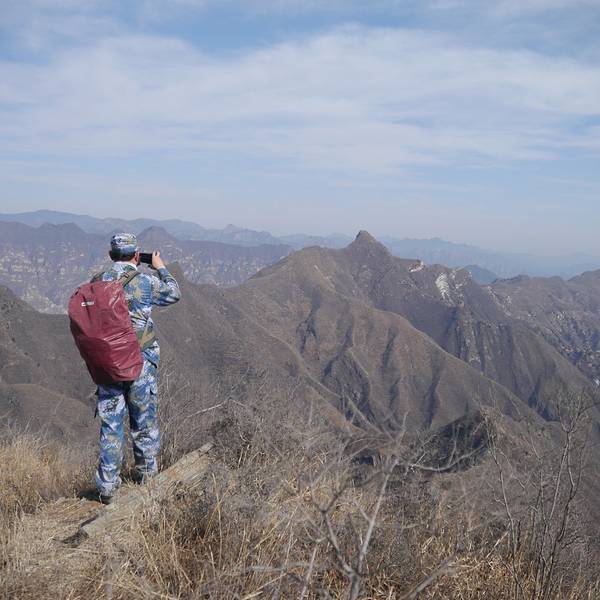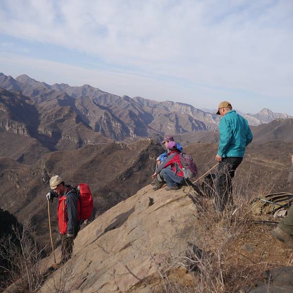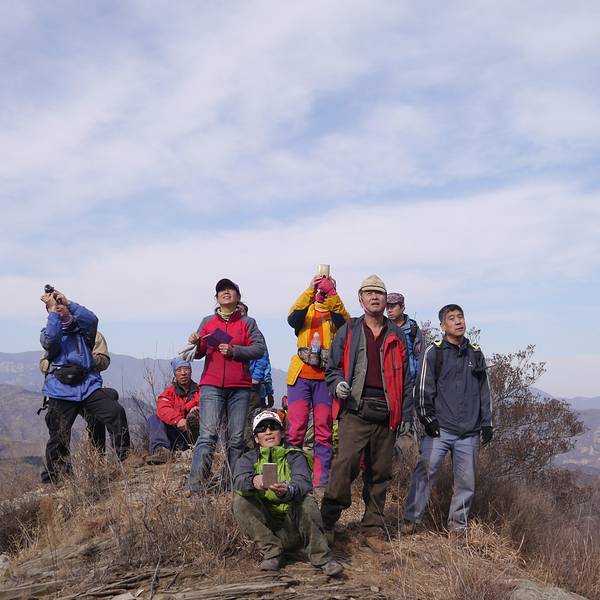 Ta=户外 大家站在高山之巅 遥指远处无边蓝天 白色的小五台山 有种莫名的感觉 雄伟的户外计...
