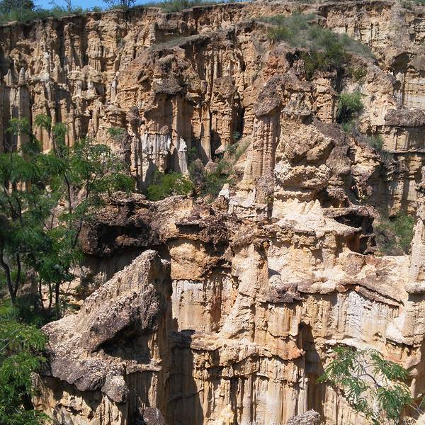 元谋土林分三个,一个是虎跳滩土林(物茂土林),相对另两个开发较好,交通更为便利;一个是浪巴铺土林,路不好走;班果土林相比前两个较不出名。这里介绍的是虎跳滩土林,位于元谋县物茂,所以也叫物茂土林。土林的主要景观,顾名思义就是看土堆成的山林。山林上几乎没有树木,全是柱形的土山,这应该是土林独特的地貌景观。1、交通:如果自驾车从昆明到景区大概4个半小时,昆明过武定到土林出口全高速,下高速后要开十多公里的国道,不过路况都还不错。也可从昆明坐到元谋的班车或者火车,然后到元谋再打车或坐到景区的专车,元谋到景区半个小时的车程。2、景区:门票80,游客相对较少,一年四季都可参观,不过夏季雨水多,路不好走,不建议去,最好冬天或春天去。走在里边你会感叹大自然的神奇造物力,有山、有洞、有亭,不过游玩的项目较少,比较适合摄影。3、吃住:因为游客较少,景区里有小卖部,没有餐馆,门口有宾馆可住宿。不过吃饭和住宿最好在元谋,选择多一点。4:注意事项:因为景区光秃秃的土林居多,遮阴的地方少,太阳直射紫外线强,注意防晒。如果到元谋,土林是不能错过的景点。