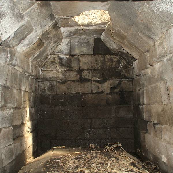 墓葬为玄武岩条石砌筑而成,由墓室、甬道、墓道三部分组成,墓道朝南。墓室呈长方形.南北长约4米,东西宽约2.19米,高约2.14米,墓门宽约1.46米。墓室南接有4米长的甬道,甬道的南面连接长约8米的斜坡形墓道。甬道两端各设有石门一重。墓道与甬道相接处,是用一整块石料凿成的四级台阶。墓葬平面呈“T”形。墓室四壁由加工完整的玄武岩石块垒砌,墓顶为平行叠垒起孟顶,状似覆斗。墓室四壁和甬道两壁原涂有很厚的白灰面,其上绘彩色壁画,今已全部剥落,仅存残块。墓上地表原有覆盆式础石多块,墓葬四周散布着大量瓦砾,推测墓上原设有享堂之类的建筑物。墓南出土一尊石狮,雕琢细腻、精美,颇具盛唐风韵。