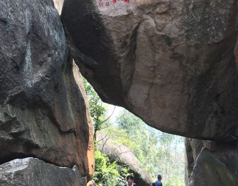 首先是门票很公道,一人20元,1米2以下的小孩不用钱。其次是山虽不高也不大,但景点挺多的,没记错的话是有24个奇观,我们悠哉悠哉边找边玩,一共花了4个小时,很适合周末带小孩去爬山,值得推荐。最后,是去景区的这条路路况不是很好,汇车的时候就显得很窄了,倒是山路不难走,对于我一个新手女司机来说可以轻松驾驭。