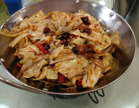 这家店在善德幼儿园对面,还是第一次来这边。一家家常菜馆,装修的也比较普通,比较接地气,店堂里挂着一帆风顺的大牌子。一上桌就给你一大盆热水,给你烫烫碗筷。既然是家常菜,点的也就是一些家常菜。包菜暖锅...
