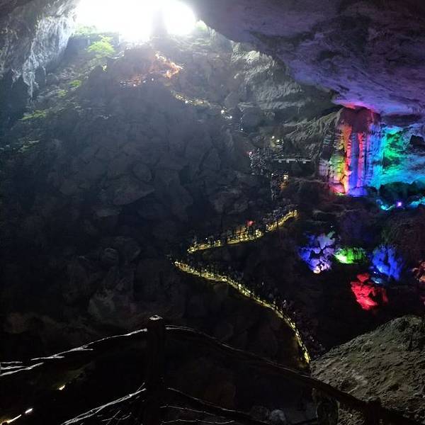 实用 游览完景区,门外更有休息长廊,非常贴心的服务。两岸奇景密布,巧夺天工,美不胜收这里游览面积达6万平方米,藏在山势雄竣的大口岩溶洞中,是一个大型的地下暗河溶洞,上下共分为三层,洞内有无数千姿百态、瑰丽多彩的钟乳石,步行游船,全方位立体游览,是国内少有的集灯光,生态,人文为一体的综合...这里游览面积达6万平方米,藏在山势雄竣的大口岩溶洞中,是一个大型的地下暗河溶洞,上下共分为三层,洞内有无数千姿百态、瑰丽多彩的钟乳石,步行游船,全方位立体游览,是国内少有的集灯光,生态,人文为一体的综合性景区。 展开