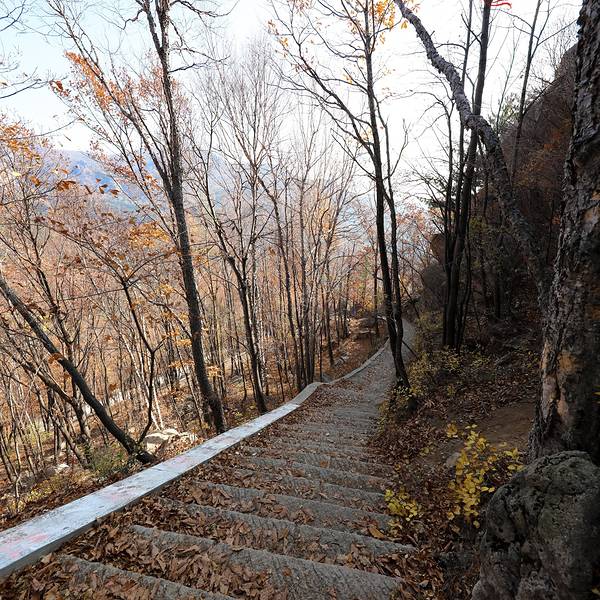 2、北门:先坐长途汽车到密云县。密云县换乘到东小白旗的长途汽车,在密云县新城子乡曹家路黑关村下车,步行约500米即到雾灵山北门。不过到东小白旗的长途汽车班次极少,若赶不上,可乘坐密云52路公交,【雾灵山北门】站下。