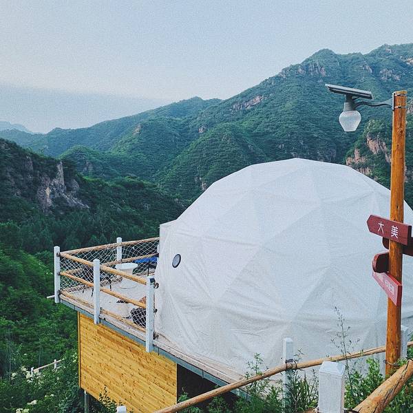 白墙、灰瓦、马头墙,像吴冠中笔下的泼墨画,行于尘世,超于尘外。还有雕梁画栋、花窗连廊的四合院,内部开阔古朴、光照充足,适合一大家子人一起住,晚上可以在院儿里烧烤、聊天看星星🌠🌠当然还有最有特色泡泡屋,内部五脏俱全,视野很好,躺在床上就能承包整座山谷。