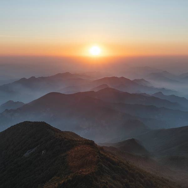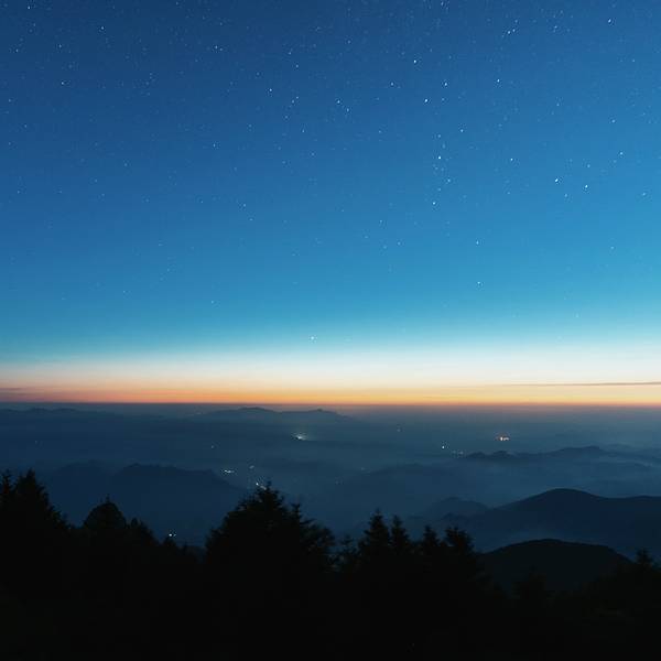 这些宁静时刻,就是繁忙都市生活之后追寻的宝贵时光。坐在这璀璨星河下发呆是一件幸福的事,可以完全地放空自己。回望古今,思考未来。不知不觉,月亮落山了,银河也落山了,东方的天边露出了鱼肚白,万物慢慢苏醒。太阳升,云雾起,一座座山峰在云雾中若影若现。金色的晨光从东方蔓延出来,渐渐布满了天空。