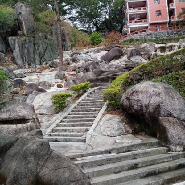 就搭乘观光车下山。购买门票是30元。趣味性不够,距离又太远啦 由于停电 周六去的,运气不好停电,没有表演看。大热天爬上168台阶,步步高升,沾点好兆头。