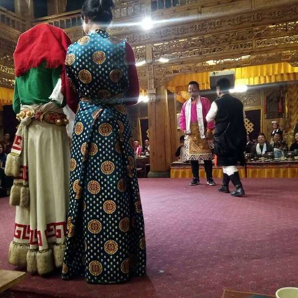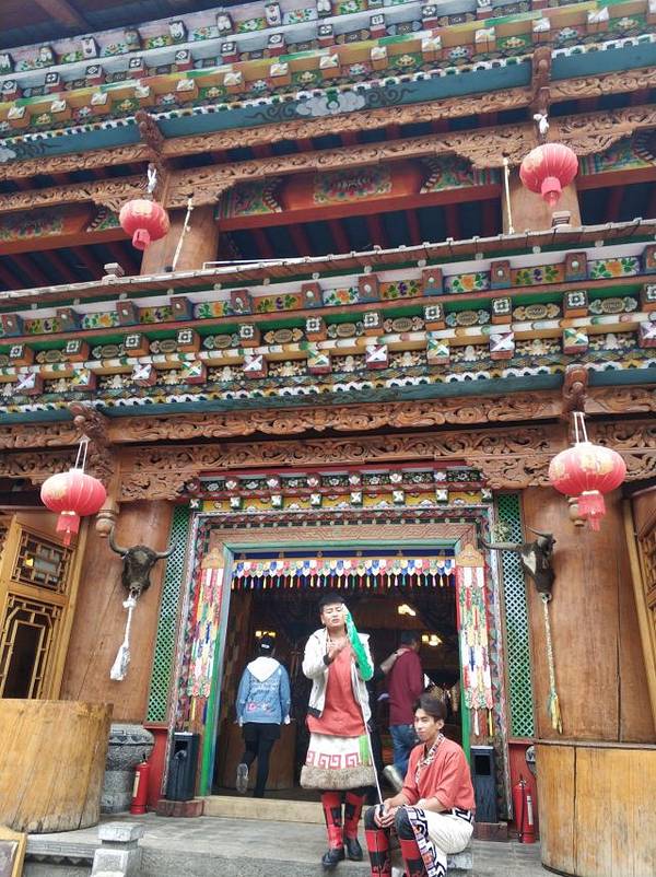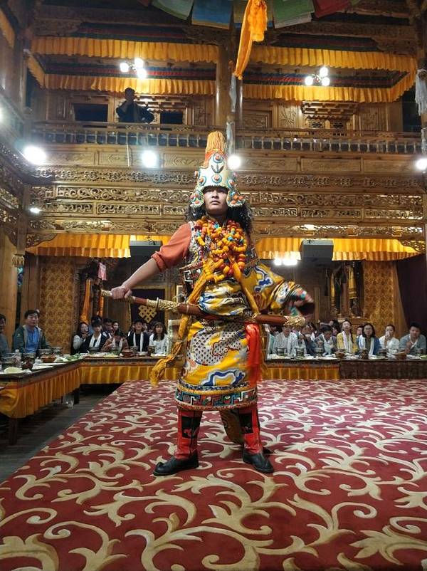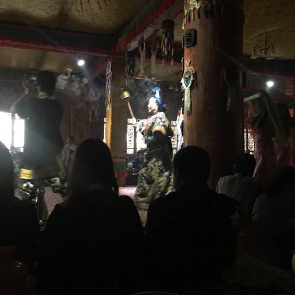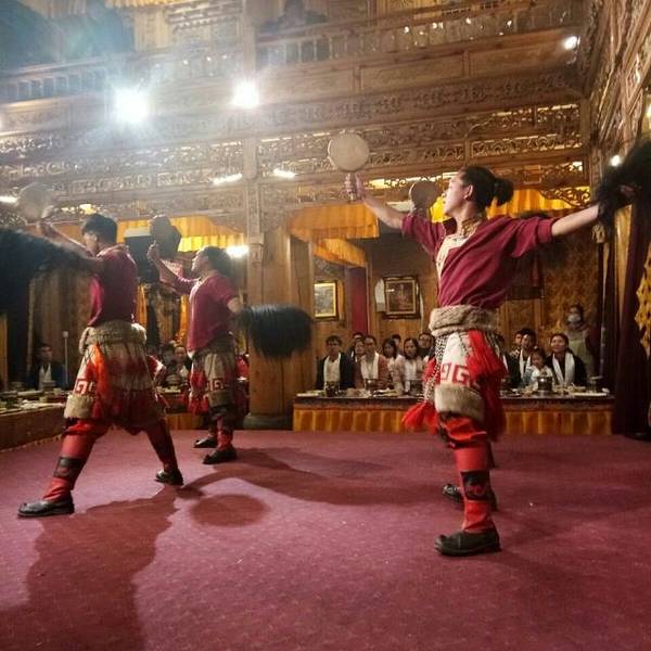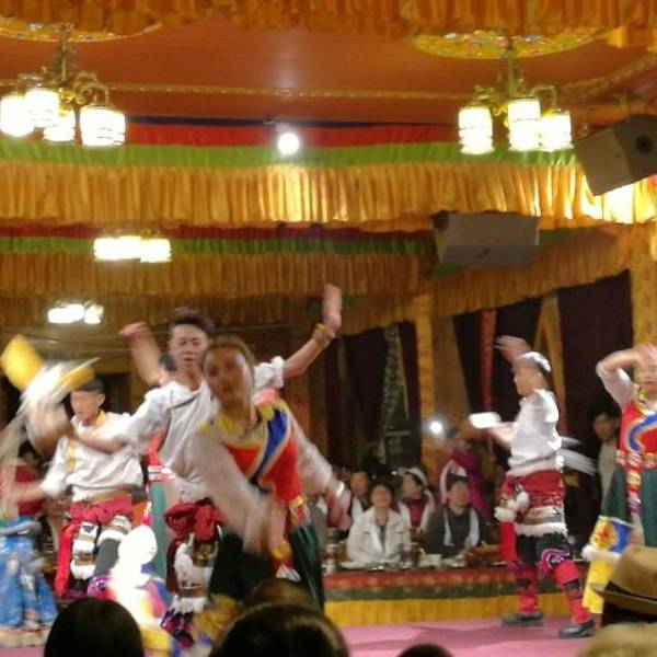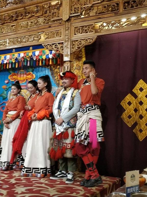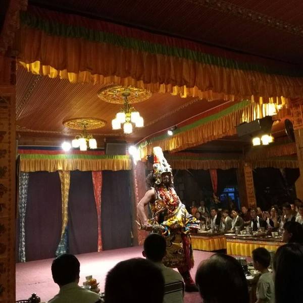 藏族商业化运作的饭庄,小火锅管饱,需要烤牦牛肉需要加钱40到50元左右,根据人员数量核定价格。大约有十个演员声称土司家的主人,表演一些歌舞节目,挺热闹的。进门拍照,收费20元一张,可以自己选择要不要,挺讲理的。