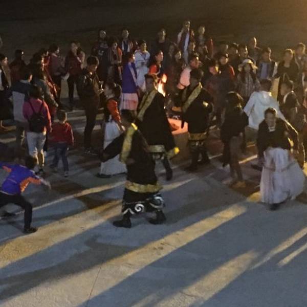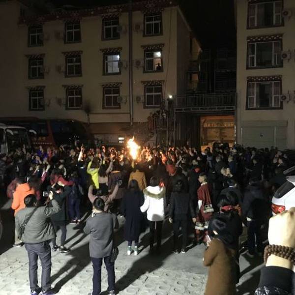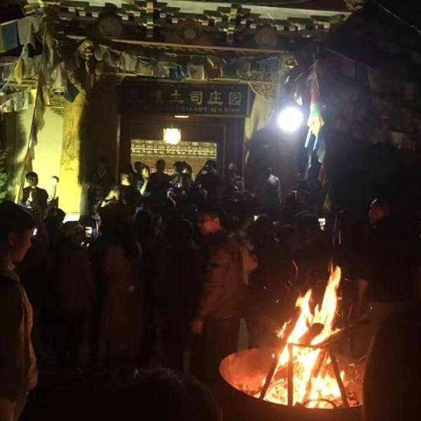 导游介绍把我们一行无人拉到了哪里,每人280元,开始感觉有点贵。首先庄园的服务人员带我们参观了藏族居住的房屋陈设并做了简单的讲解,之后自助餐,青稞酒,炒青稞面,酥油茶,小火锅管饱。席间有藏族贵族服饰的展示,藏族舞蹈,歌曲,还有一个互动节目,没看过的我们感到很新颖。最后在院子里面有篝火晚会,来旅游的人们玩得都很嗨。