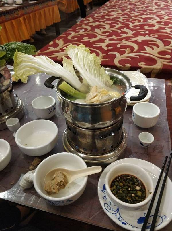 每人一个小火锅,想吃什么自己加,菜管够。还有当地的马奶茶吧好像,配上青稞面很好喝的。还有一些表演,藏民族的特殊舞蹈喝歌曲。进门吃饭前排队有两个卓玛(藏族女子统称)给你献哈达,扎西(藏族男子统称)帮...