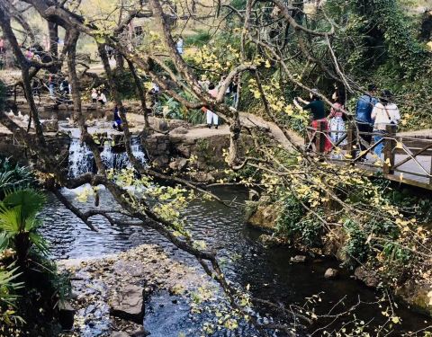 再往里面走,是古村落部分,有小桥流水、小瀑布、银杏树、村屋,还有好多鸭子、鸡、大鹅